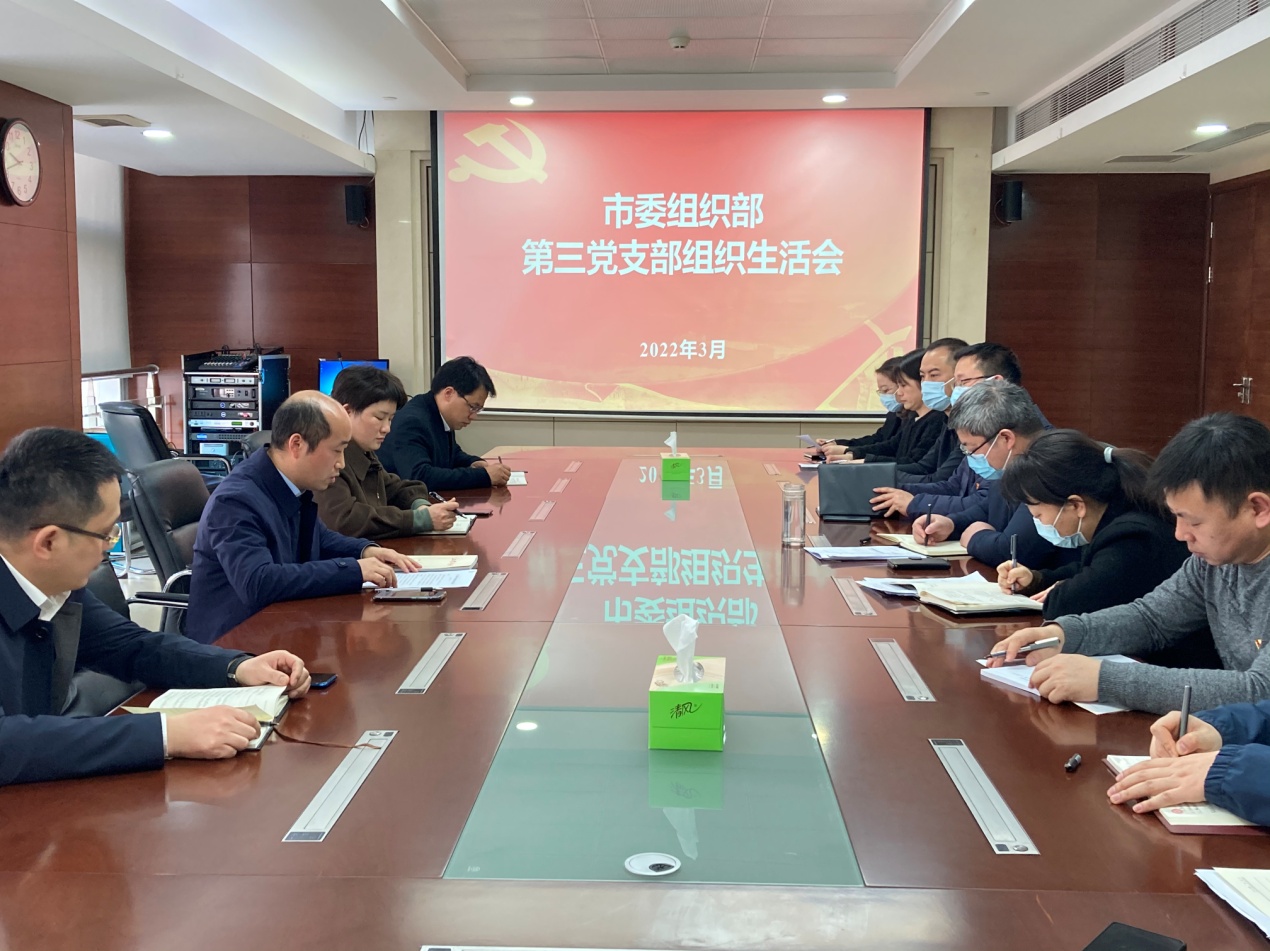 根据中央组织部关于召开2021年度基层党组织组织生活会和开展民主评议党员的通知要求,按照市委统一部署,市委组织部高度重视,统筹安排,精心组织5个党支部分别召开2021年度组织生活会,部务会成员严格执行领导干部的双重组织生活制度,以普通党员身份参加所在党支部组织生活会,与党员一起学习交流。